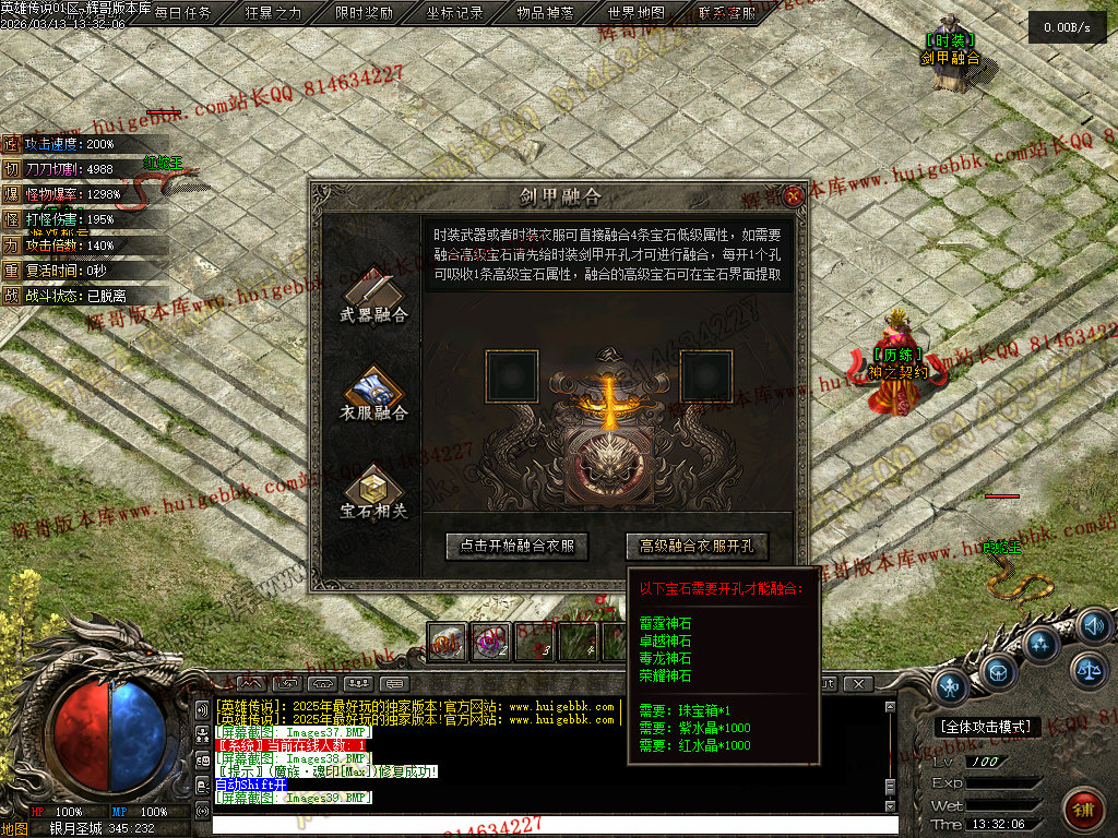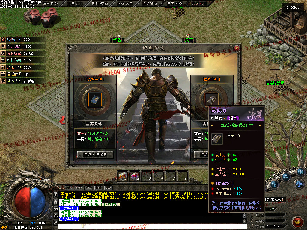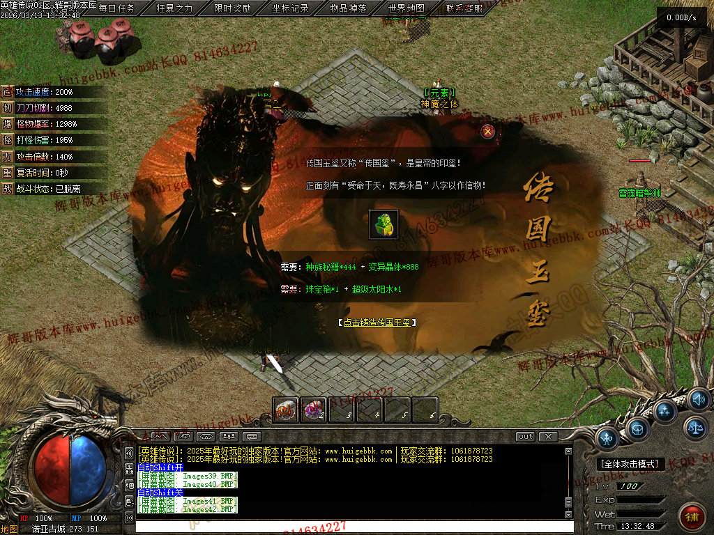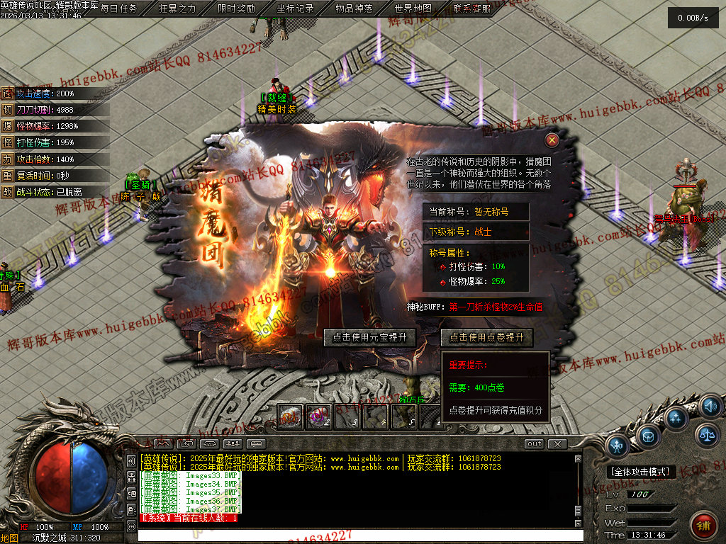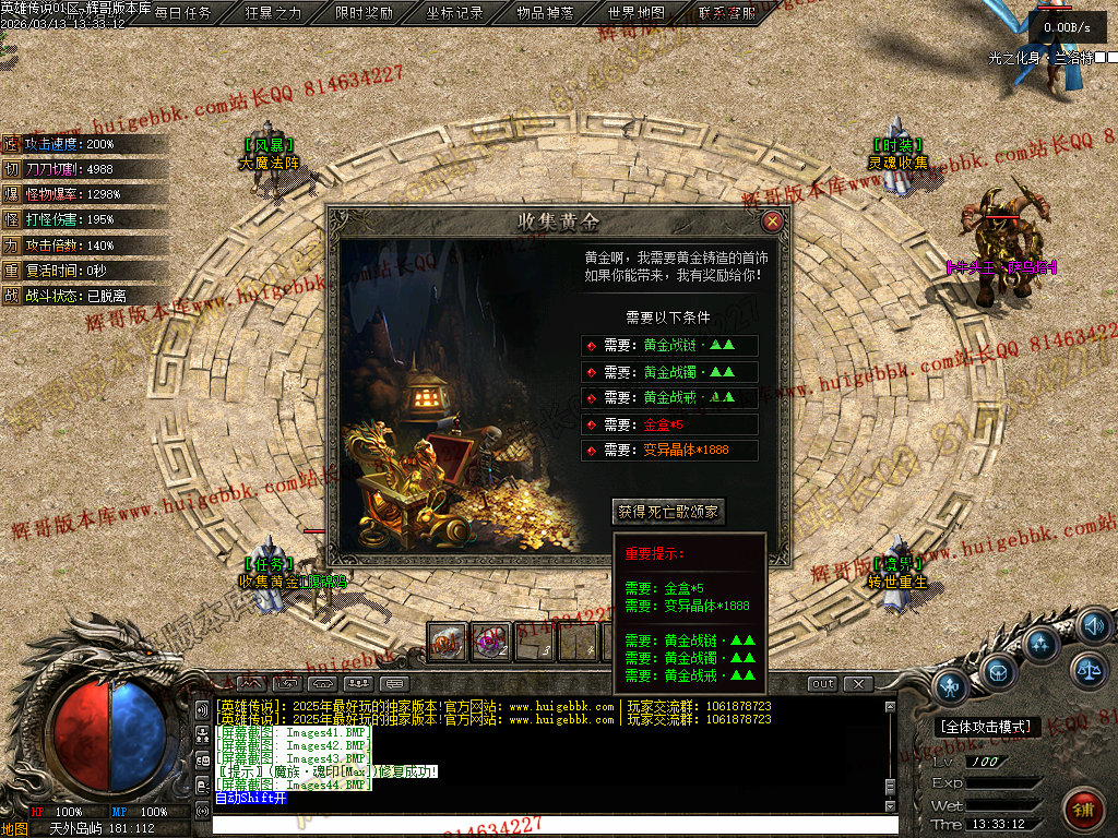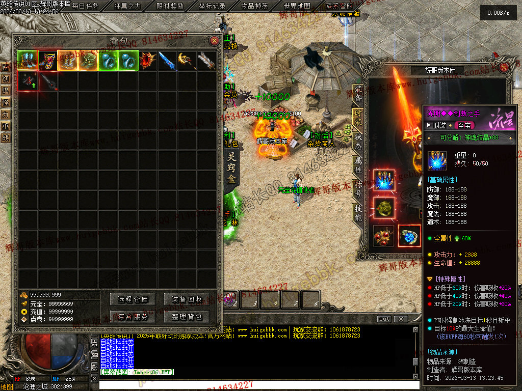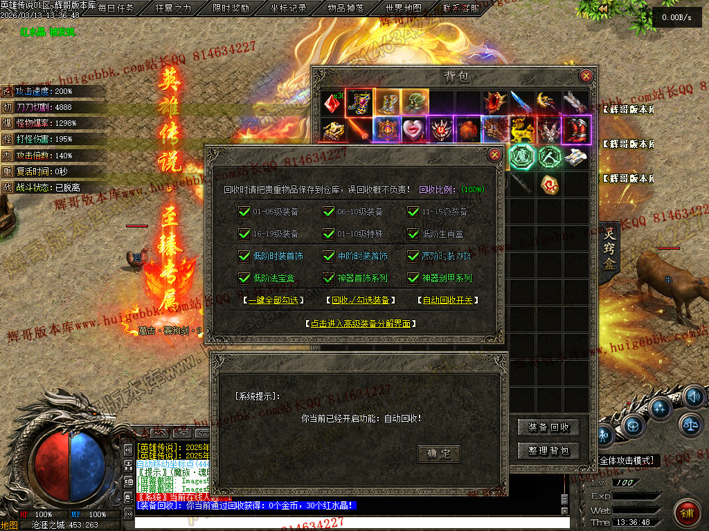 会员礼包:刀刀切割+5000、打怪爆率+50%、回收比列+50%、攻击速度+10%、