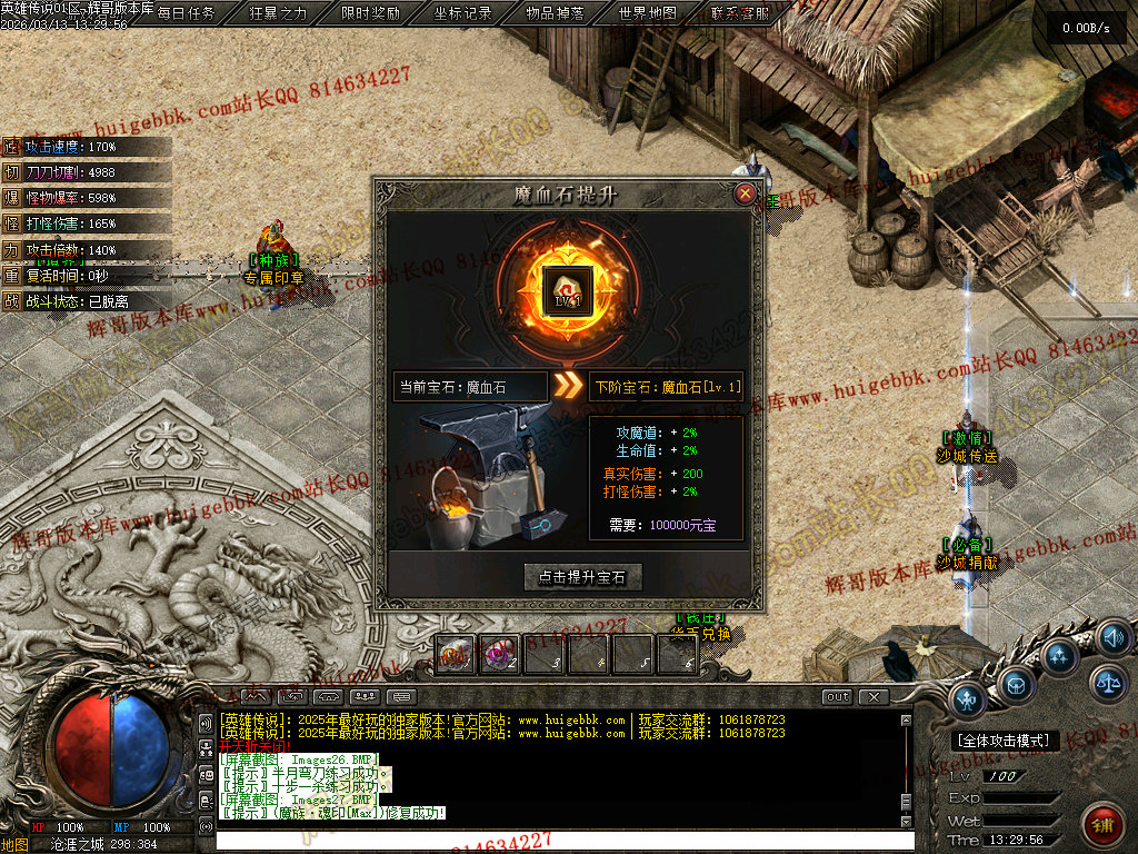 打怪吸血+10%、打怪荣誉值+100%、