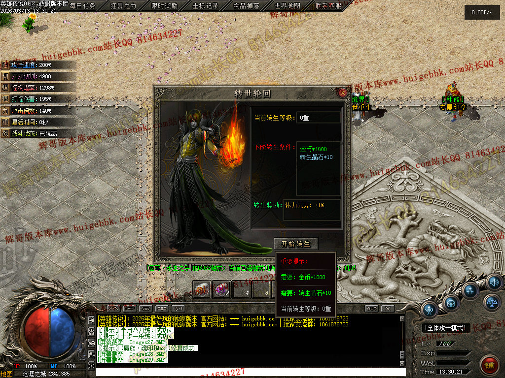 重点:转生15转后,切记去对应的种族宫完成自己的血脉传承,每天仅限一次