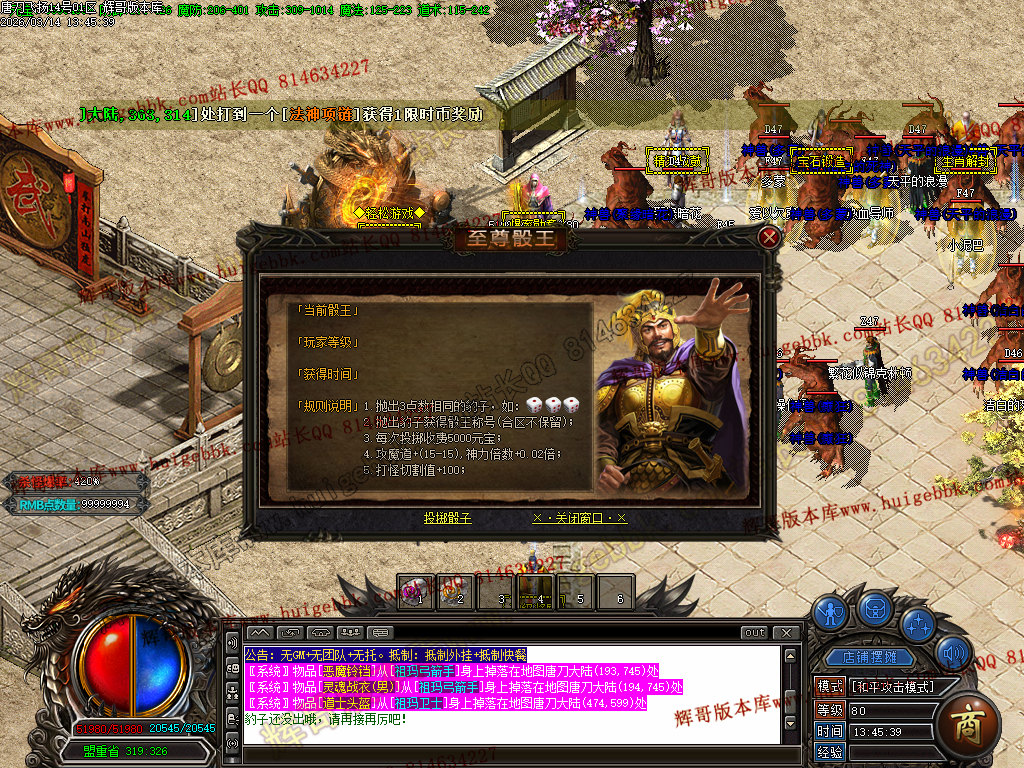 <7.打到元宝,在土城[爆率转盘]NPC碰碰运气(新手第一次免费获得1.1倍勋章)/SCOLOR=103>