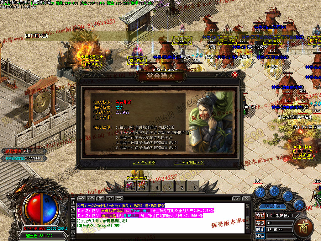 <[赏金猎人]/SCOLOR=251> <赏金活动每18点准时开启,每次活动均奖励大量钻石!/SCOLOR=103>