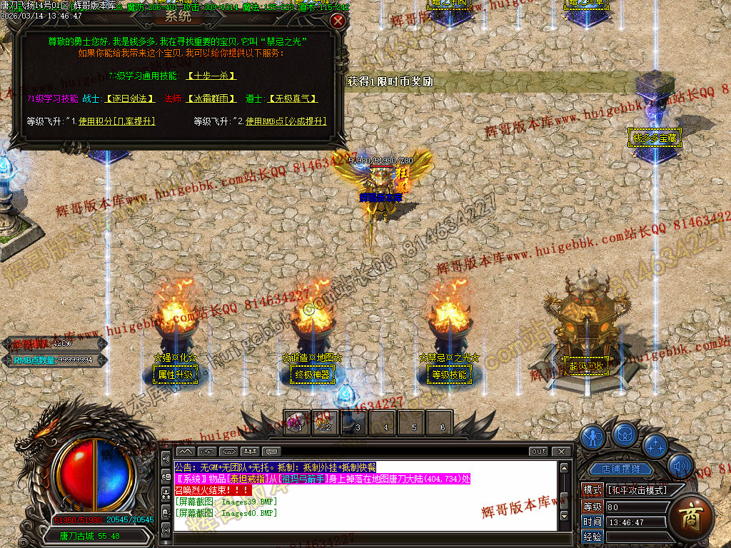 <5.打到幸运残片,在土城[幸运大师]NPC将嗜血狂魔石等级提高(本服无祝福油)/SCOLOR=103>