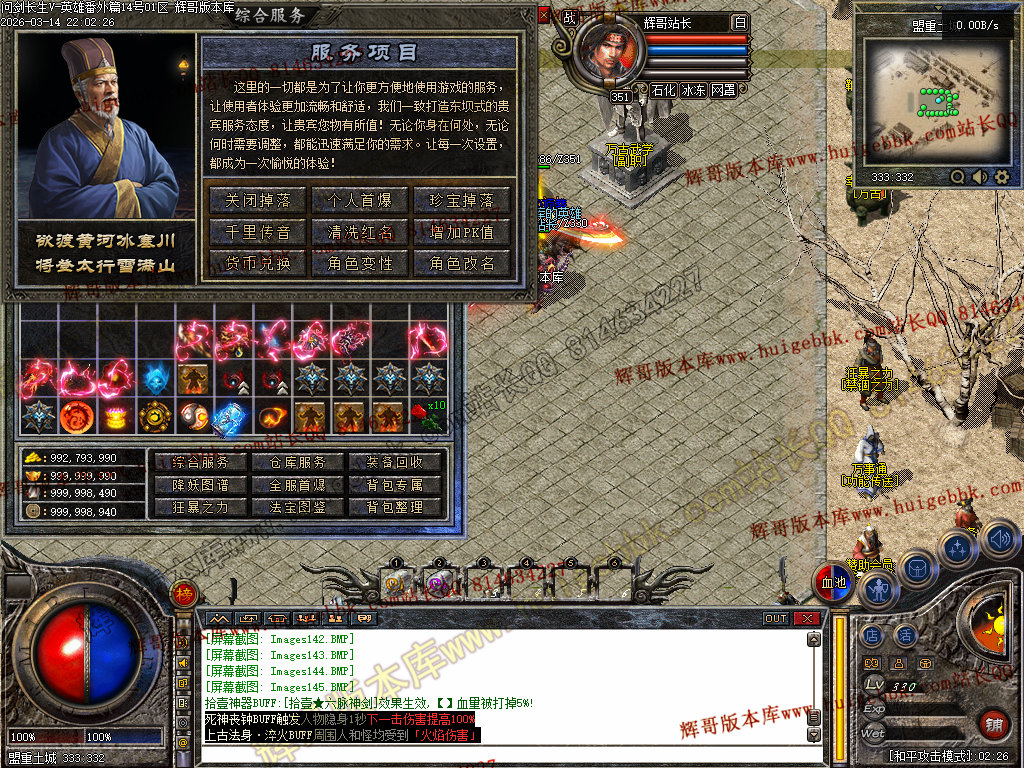 杀猫逐鹿出新村 斩妖除魔入盟重 近观绿涛汇碧海 远眺青山有苍松