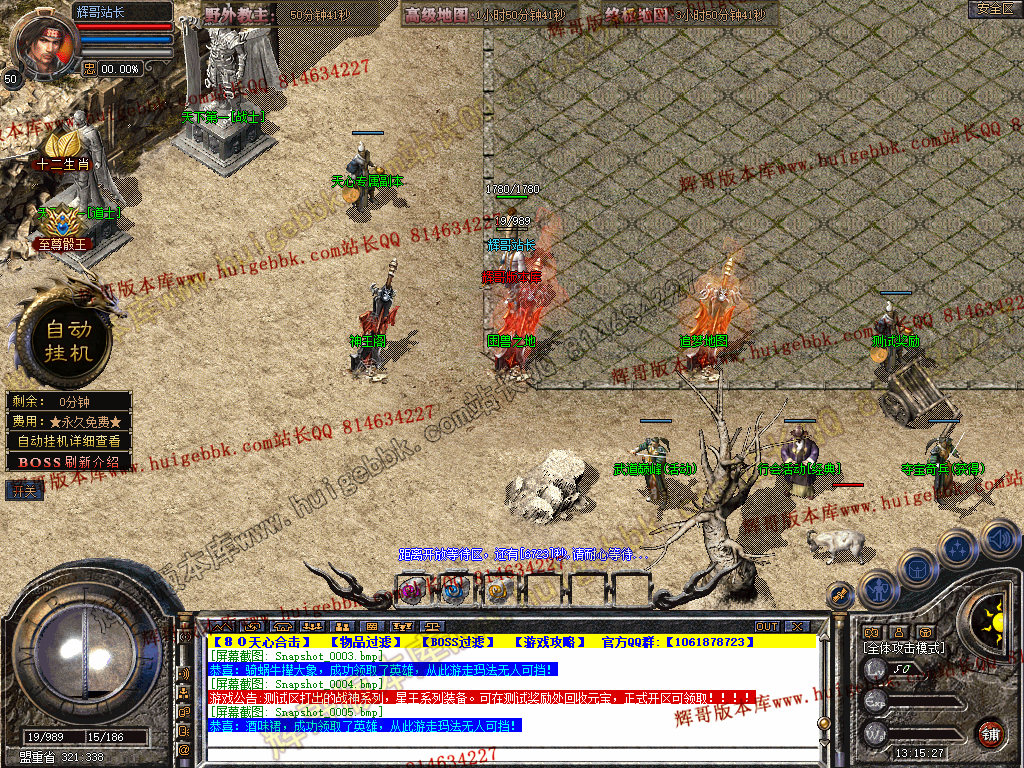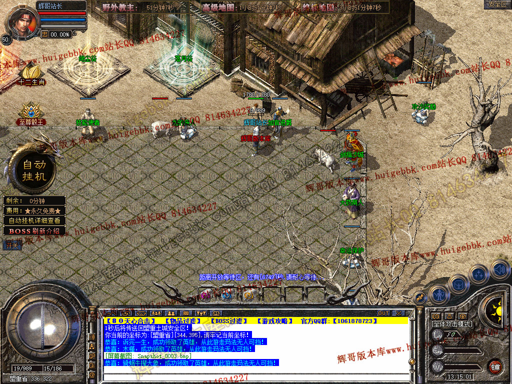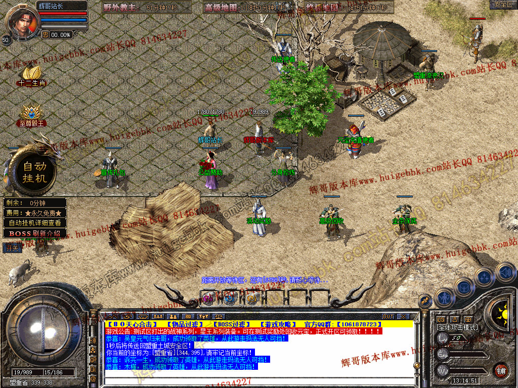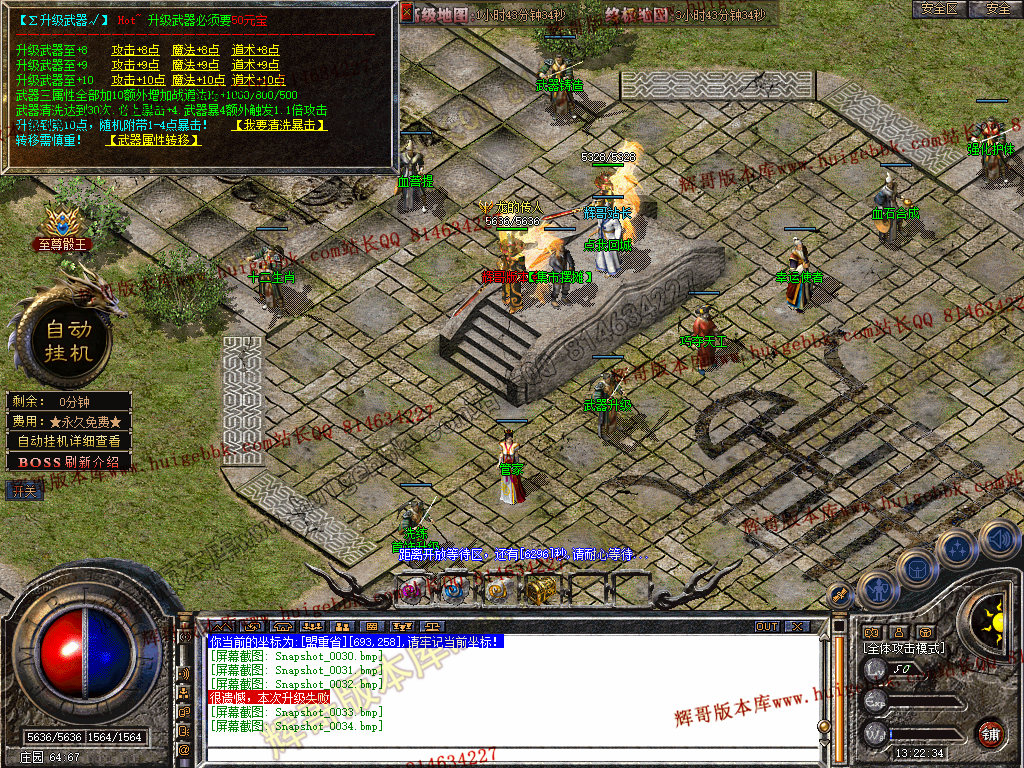 自动挂机:本服只要开启自动挂机10步之内有人就会自动飞随机无间隔!!此功能为了让挂机玩家不在担心挂机被杀装备被爆!