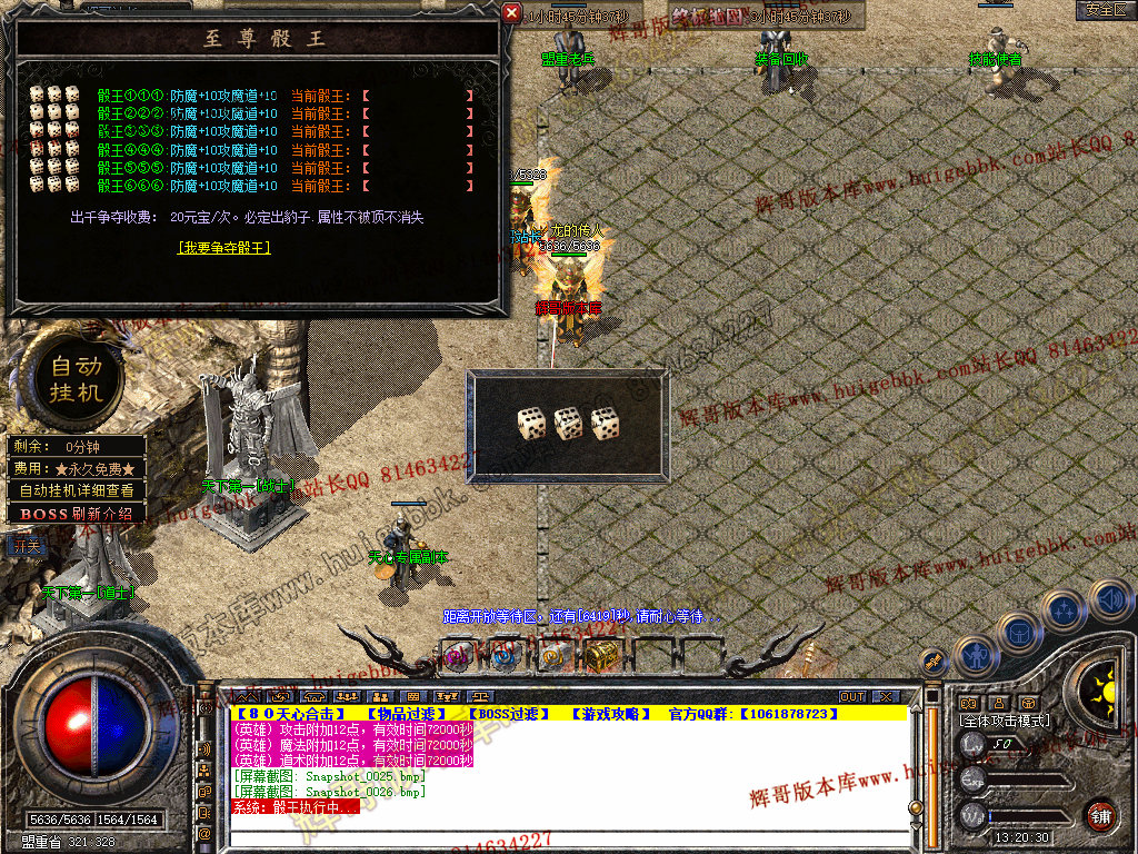 6:关于BOSS: 所有BOSS2小时刷新, 终极BOSS4小时刷新.(刷新采用同步刷新模式。到点同步刷新)
