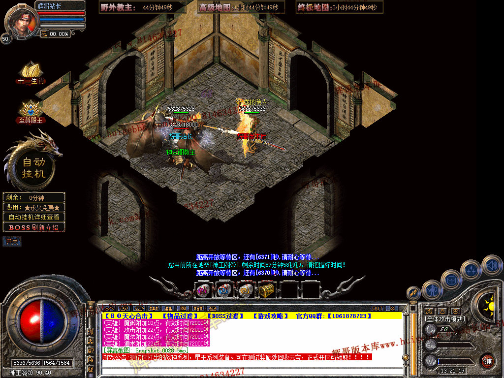 2.开区第2天中午12点开放盟重老兵NPC各大高级地图。