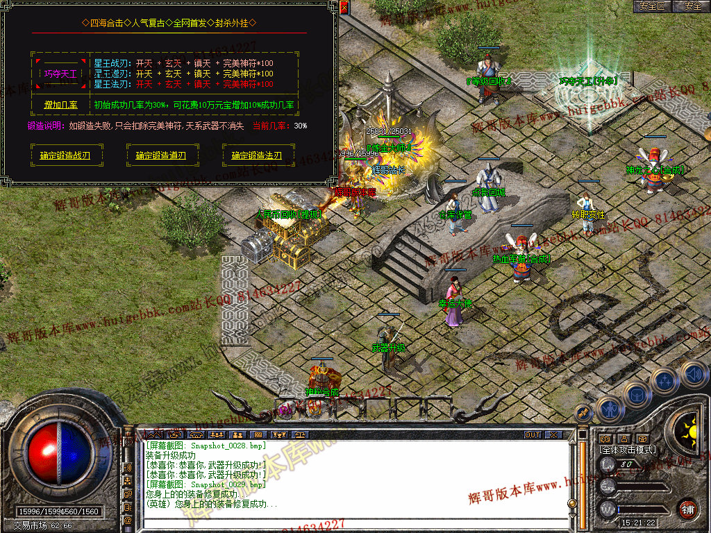 版本介绍:1.80星王+1独家特色合击版本装备保值物价稳定