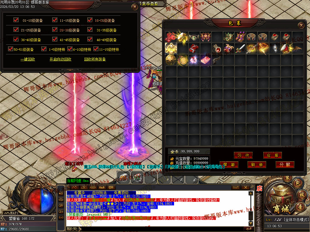 28-119独家光明杀戮神器攻速单职业传奇-带假人-四大陆-SD/ESP插件-自动回收-GOM引擎