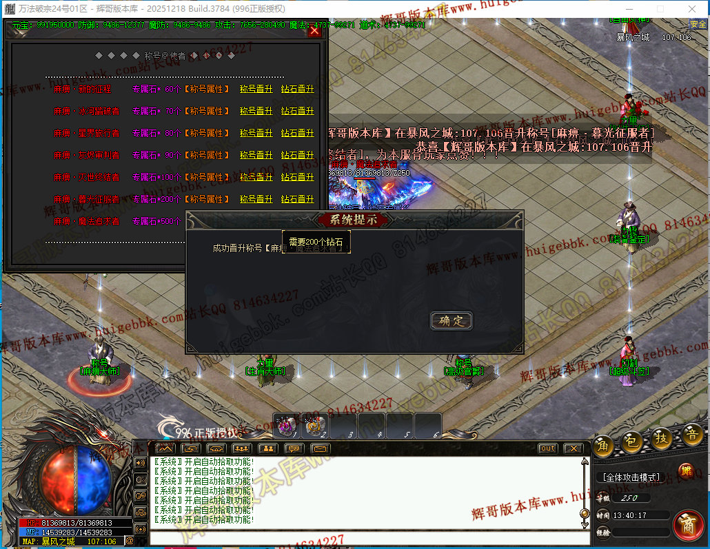 如果发现影响开区的大问题,可联系站长进行免费修复,细节问题自己处理不负责细节问题,