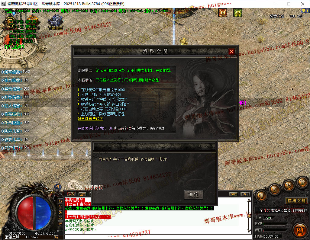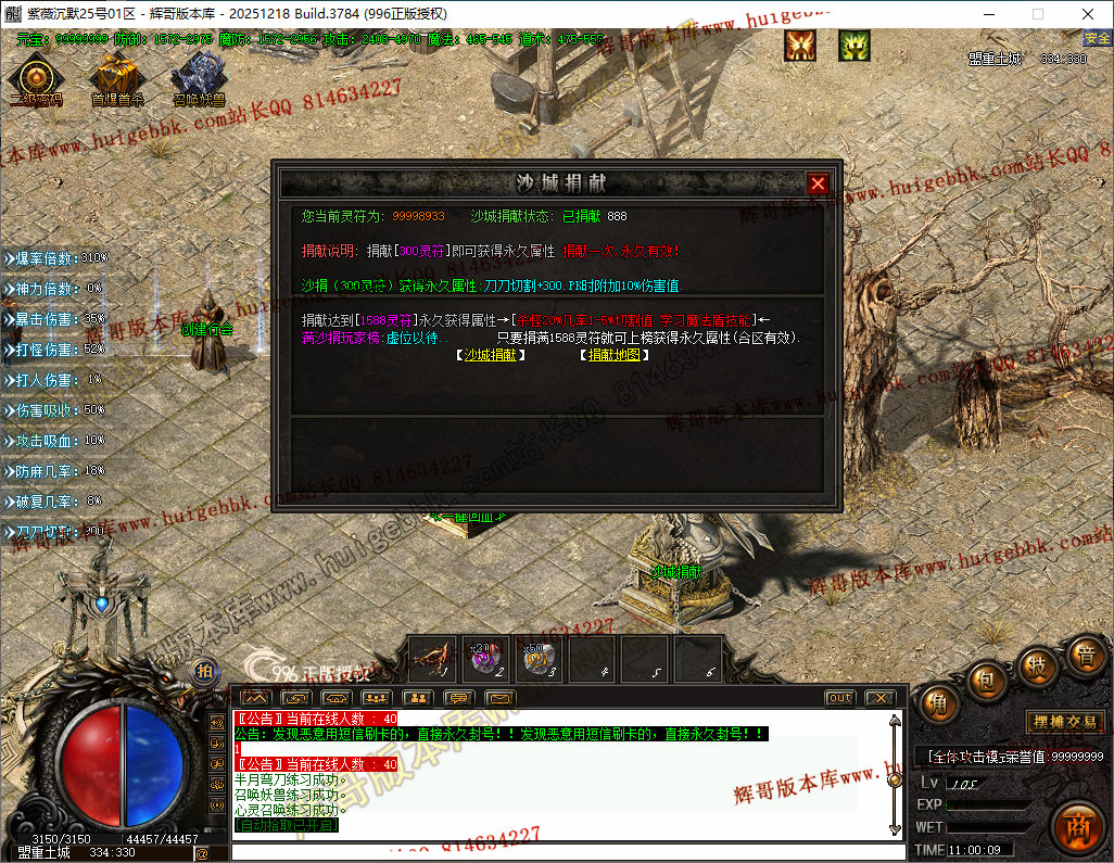 【高级玩法】会员8元(打怪上毒) + 158 满沙捐(20%几率切割怪物1-5%血量.魔法盾) + 10 狂暴(内挂挂机)
