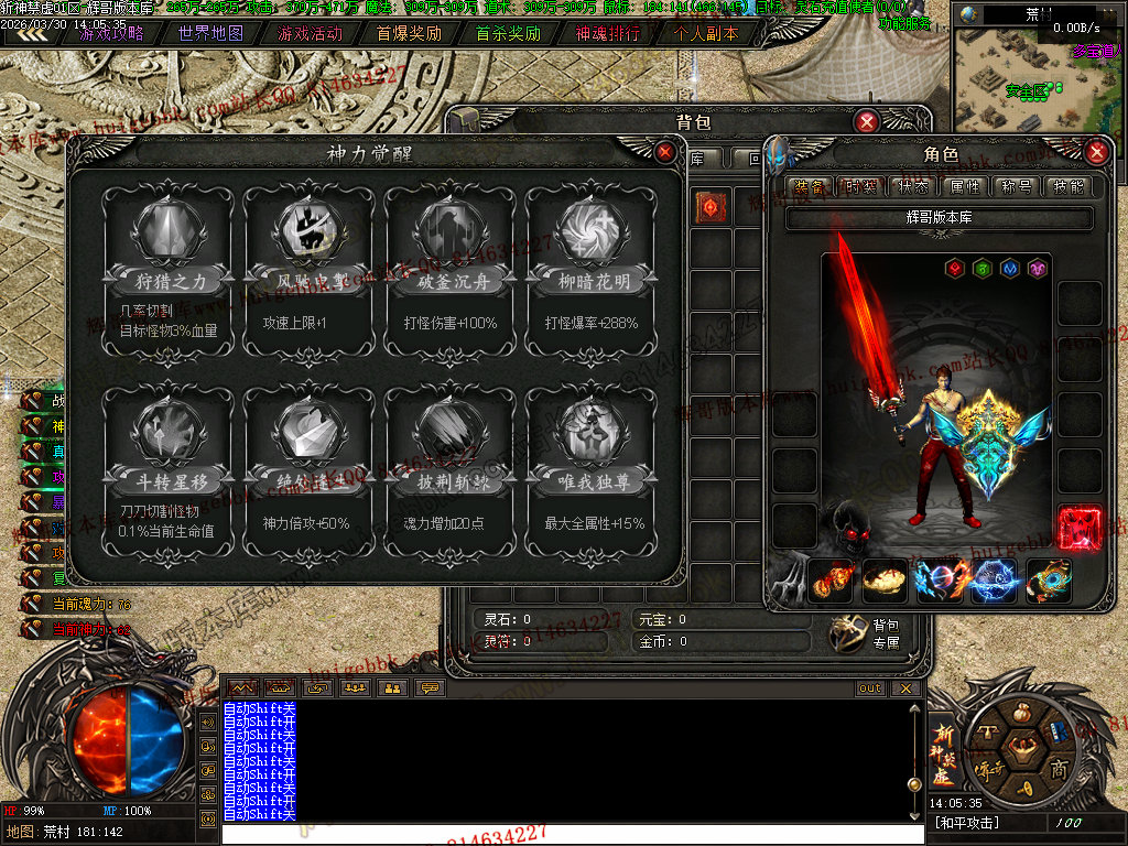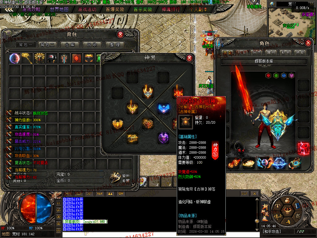 28-187独家斩神禁虚专属神器攻速单职业传奇-神魂排行-个人副本-自动回收-翎风引擎
