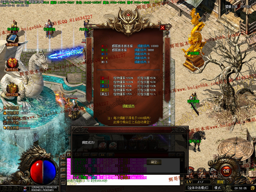 2、充值100块钱银两,领取丰厚回馈礼包,PK打怪效率大幅提升