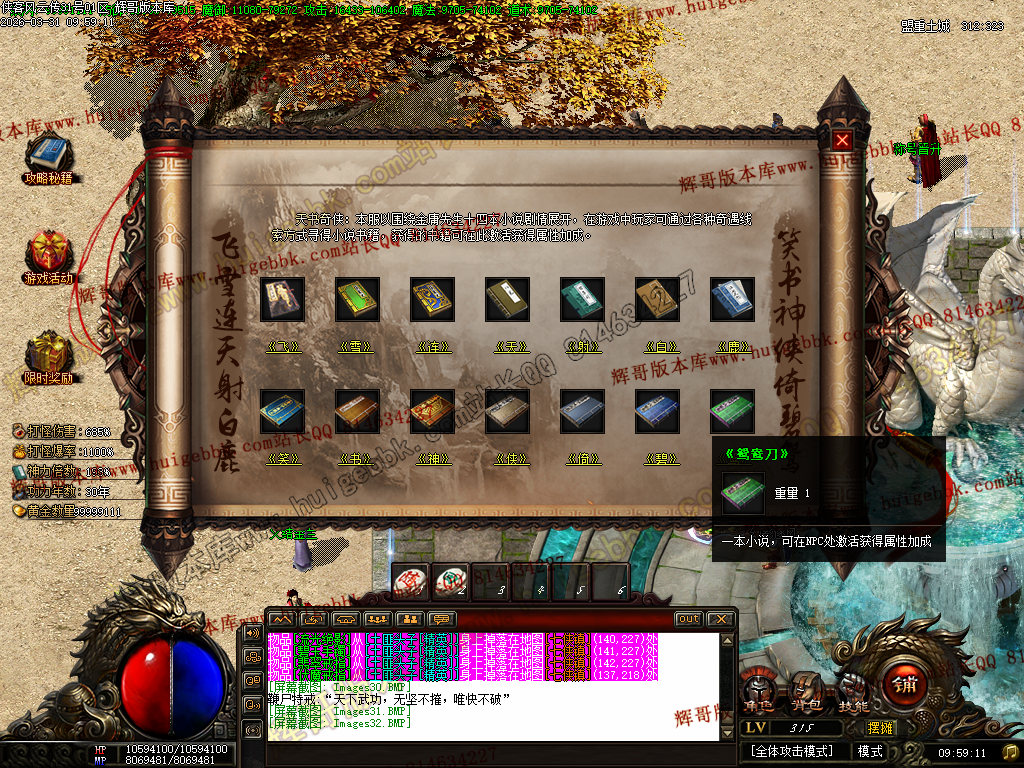 [天书奇侠]:“飞雪连天射白鹿,笑书神侠倚碧鸳”通过奇遇线索方式收集金庸14本小说,获得神力、爆率属性加成。