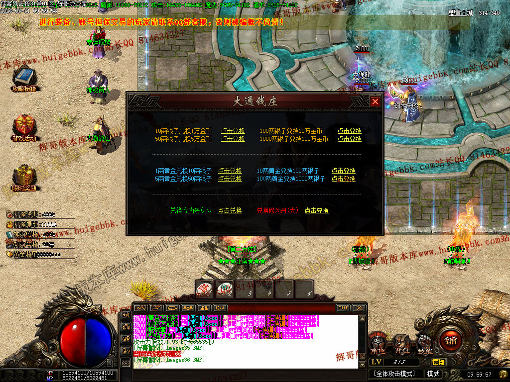 [货币出处]:金币、银两为本服通用货币,任意怪物都会掉落金币、银两,或者通过装备回收、钱庄兑换、神秘商人