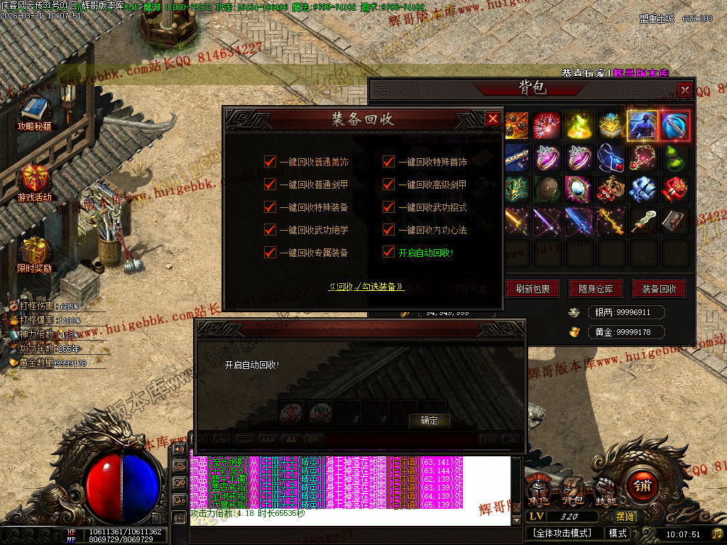 28-191独家侠客风云传专属剧情攻速神器单职业传奇-带假人-自动回收-七大陆-新GOM引擎