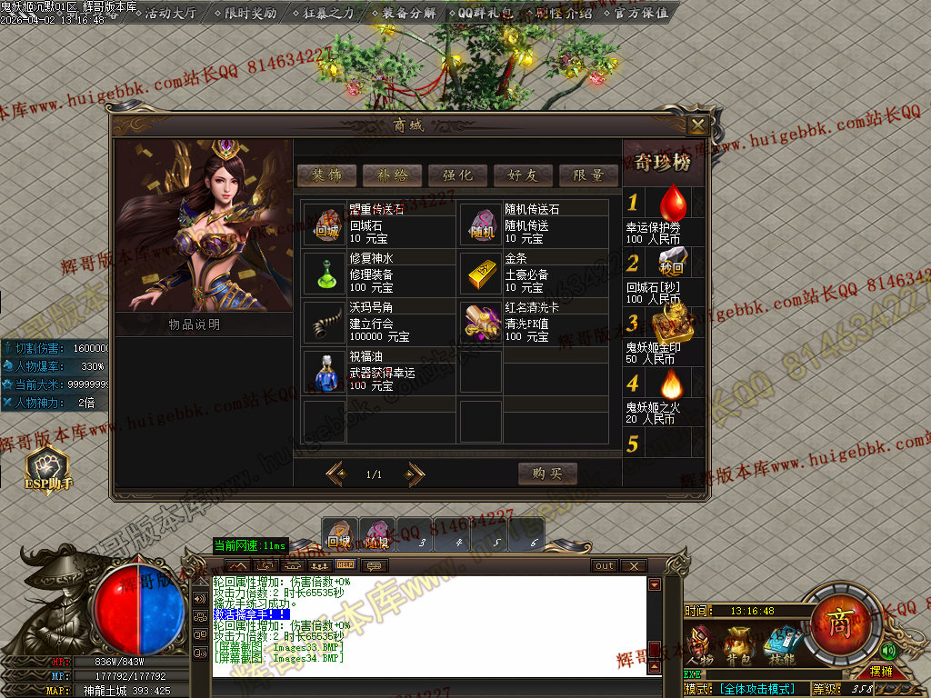 如果发现影响开区的大问题,可联系站长进行免费修复,细节问题自己处理不负责细节问题,