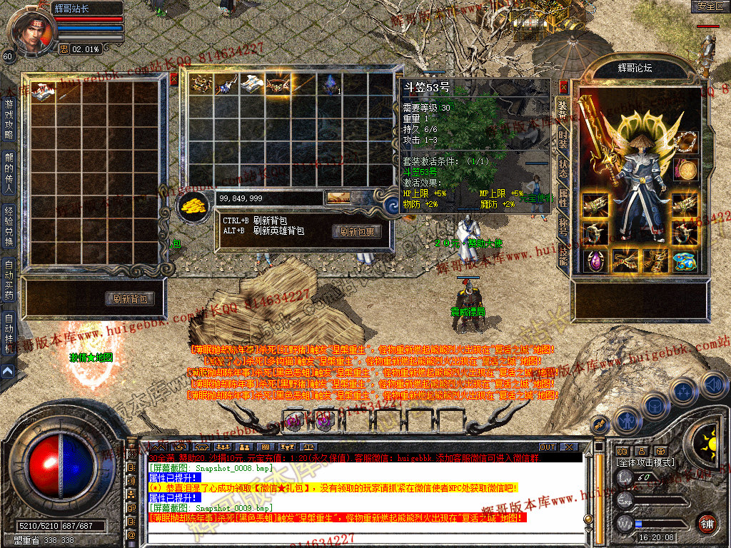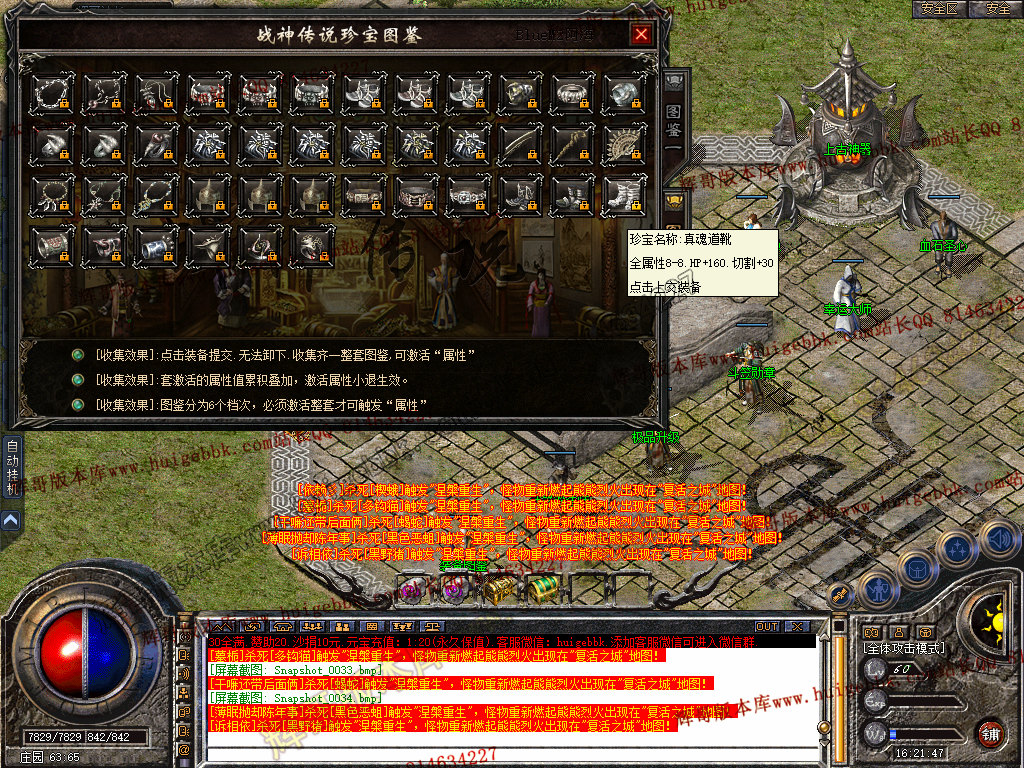 上古神器玩法:打到对应装备激活即可可获得牛逼属性加成。