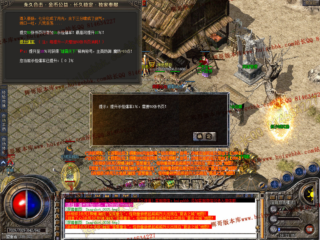 复活城地图  所有怪物被打死 30%的几率进入复活城  全新偷怪玩法。