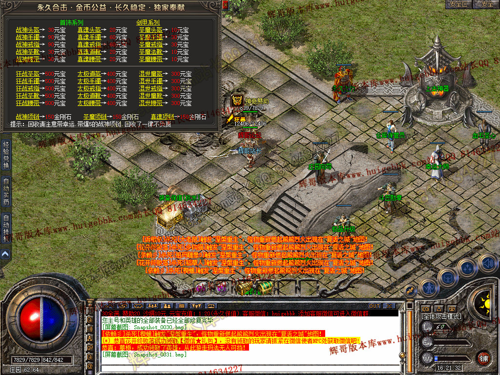 【装备排序】:祖玛 一 雷霆 一 强化一 战神 一 狂战 (所有装备 切均靠BOSS爆出)。