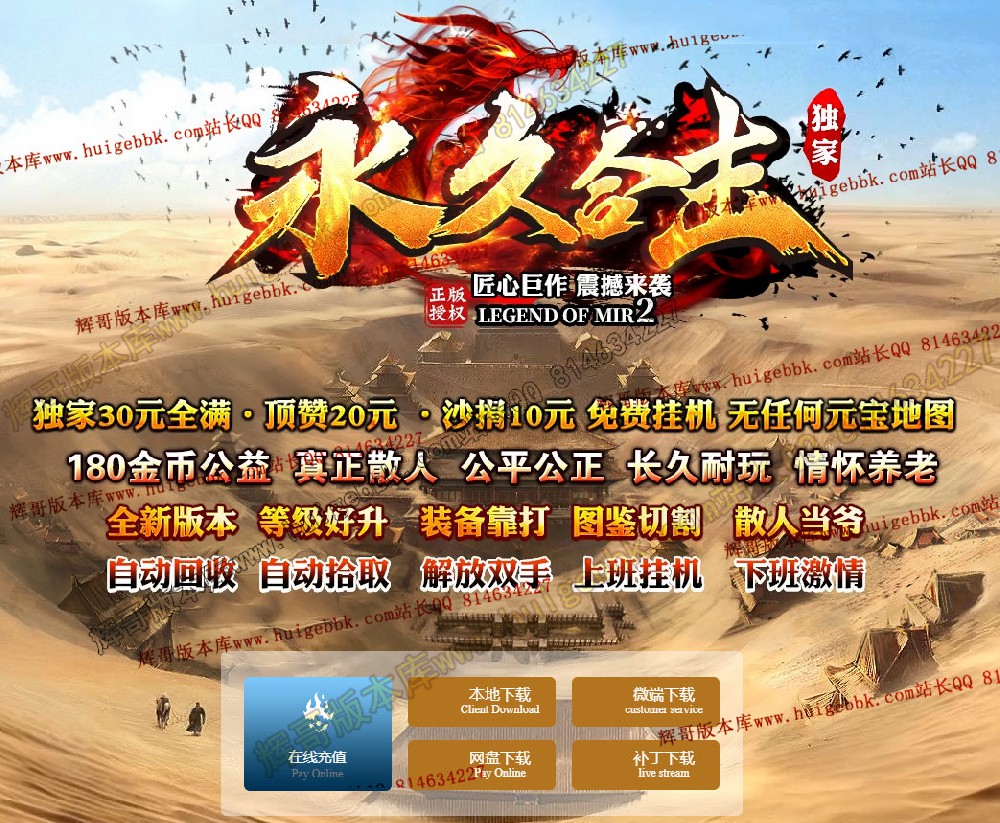 【元宝充值】:1:20充值 永久保值 游戏主要以金币消耗为主.无任何暗坑,无任何隐藏。