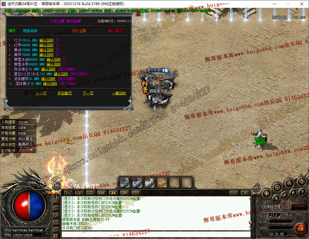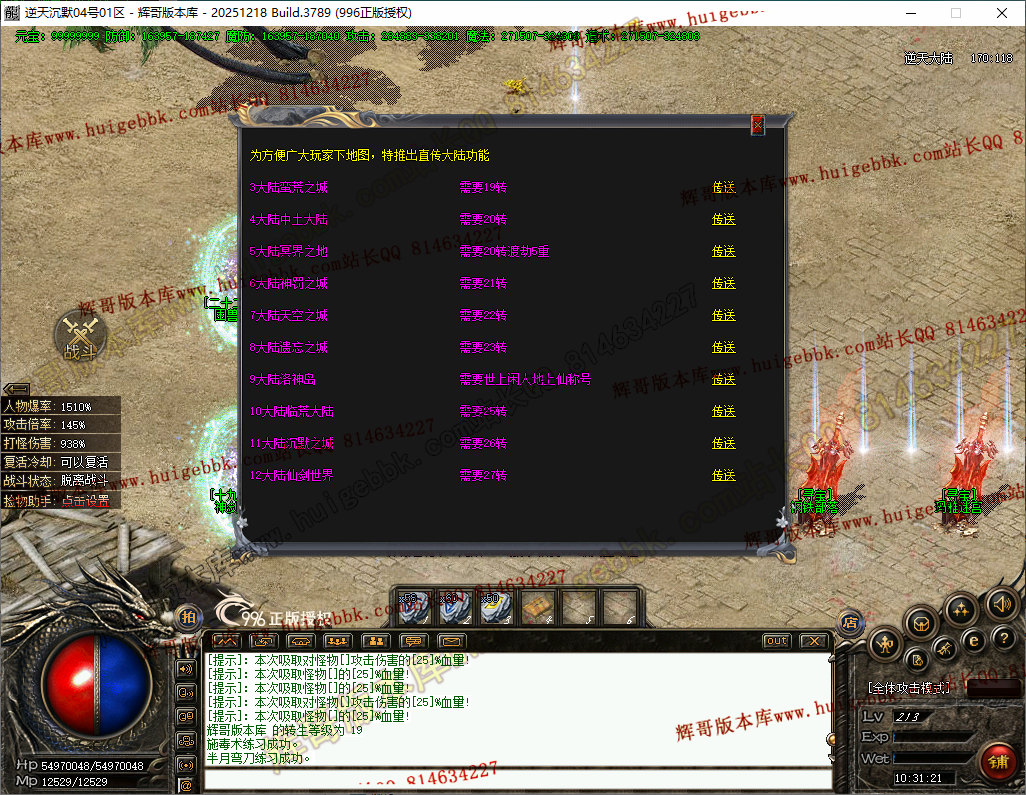 28-212独家精修逆天沉默单职业传奇服务端-二十二大陆-自动回收-自动拾取-996PC端