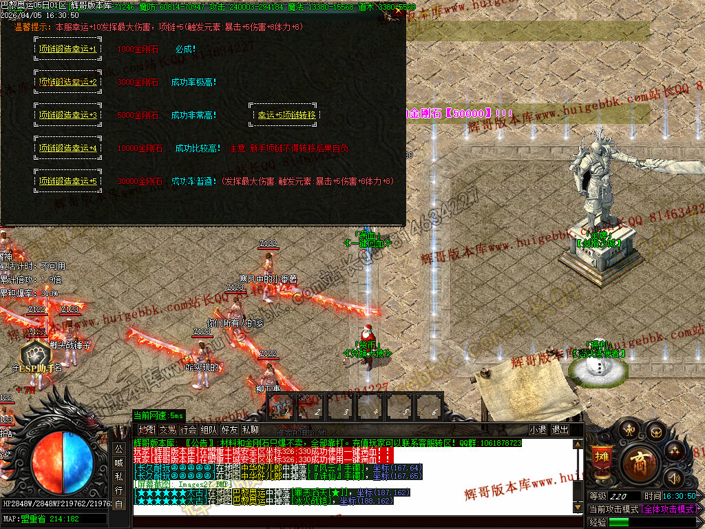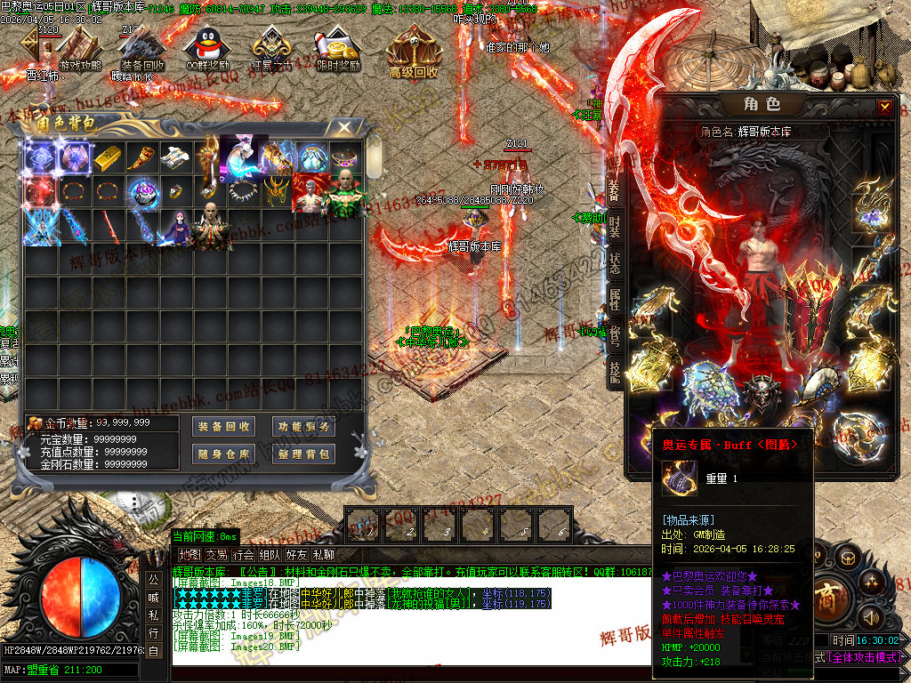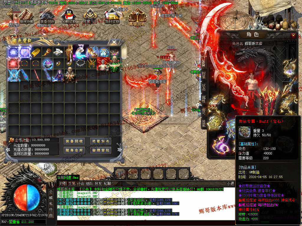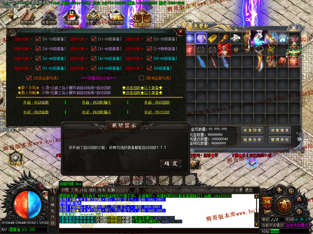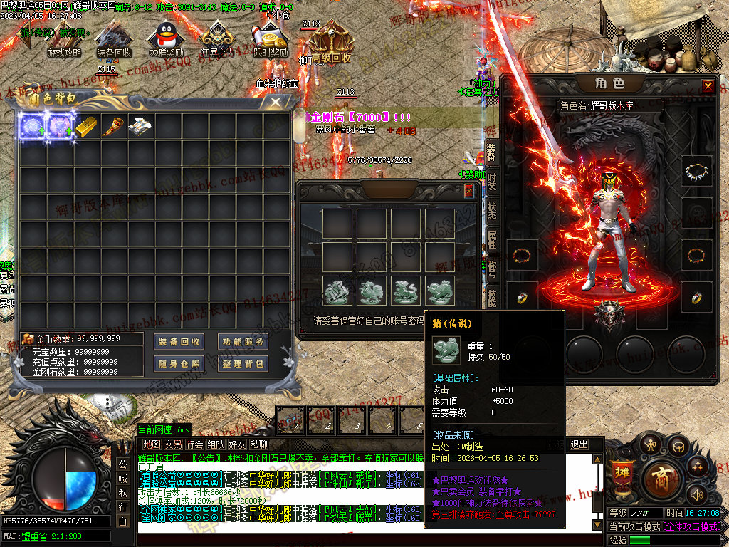 3、本服土豪玩家10大米既可,其他全部靠打,所有装备回收金刚石(金刚石只能靠打)