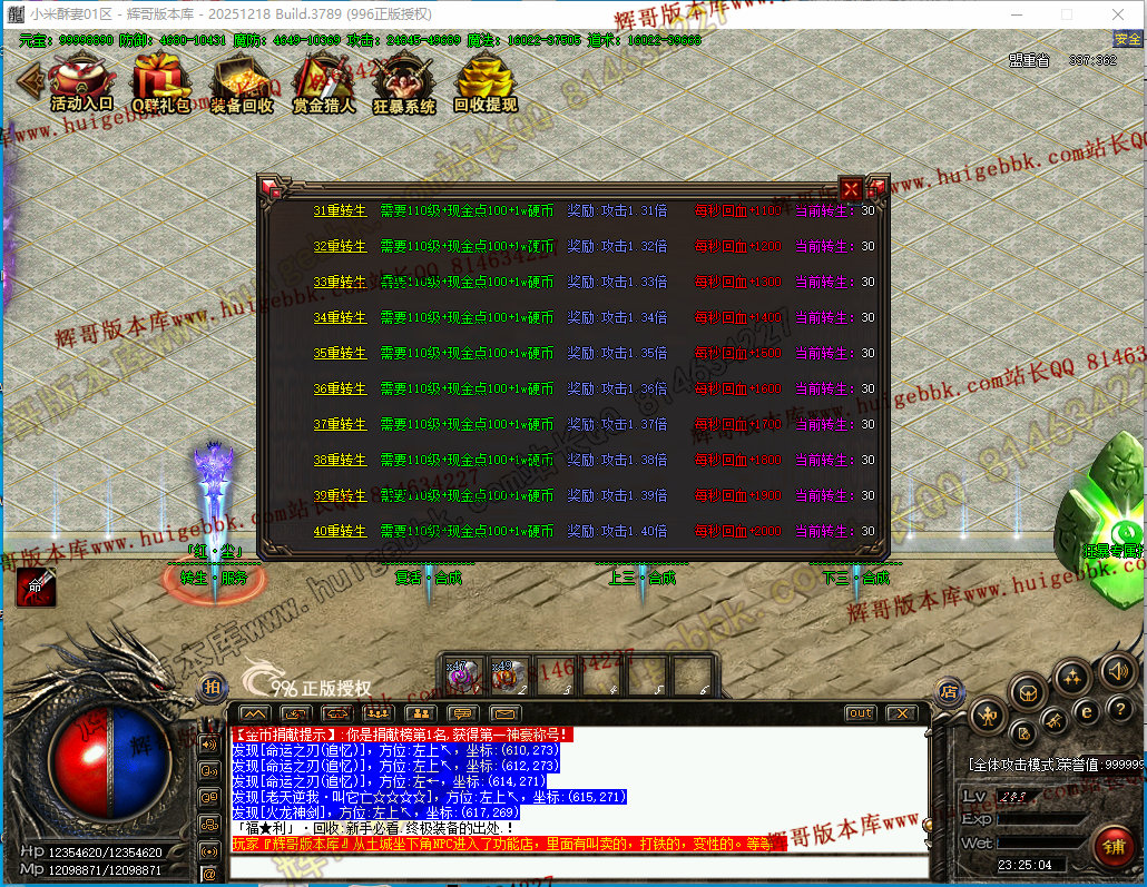转生服务:提供人物转生提升.需要等级要求+现金点+硬币.可提升到四十转