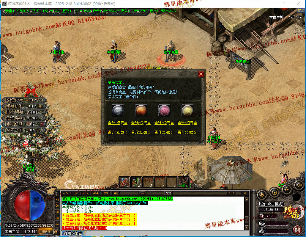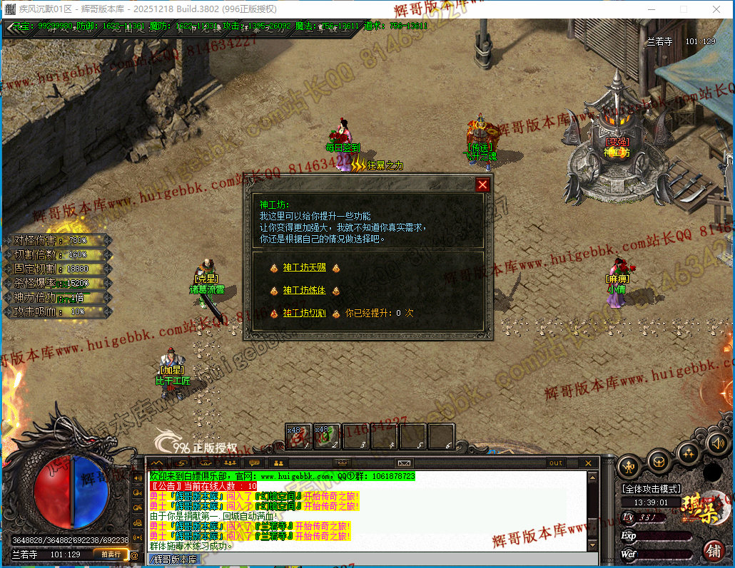 7、神工坊提升对怪切割巨大,玩家需要太古水晶提升即可,以及【天官赐福】称号,炼体,需要材料查询爆率网即可。