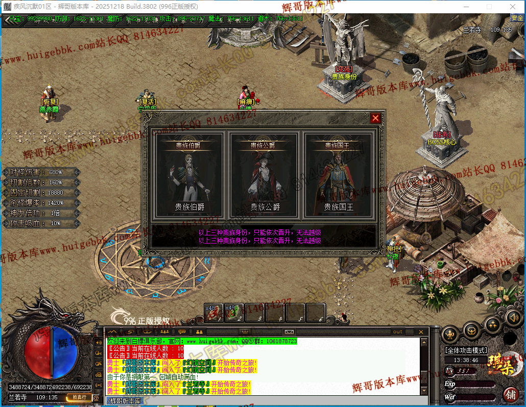 国王贵族身份:自带鞭尸效果,本服唯一鞭尸功能!