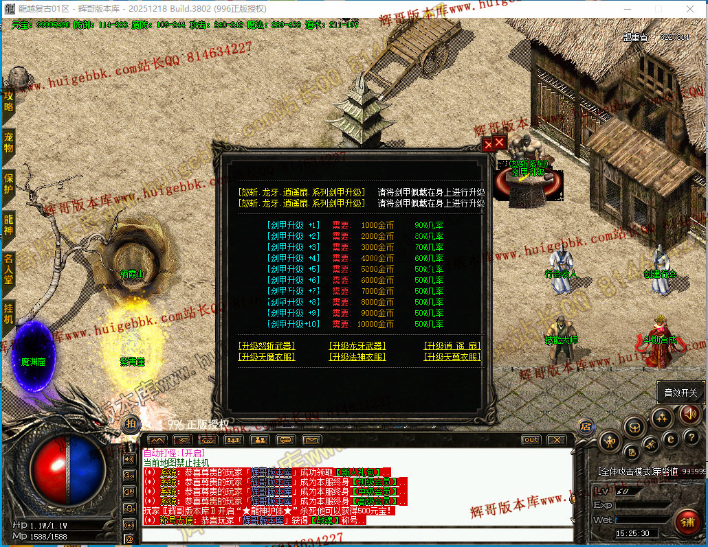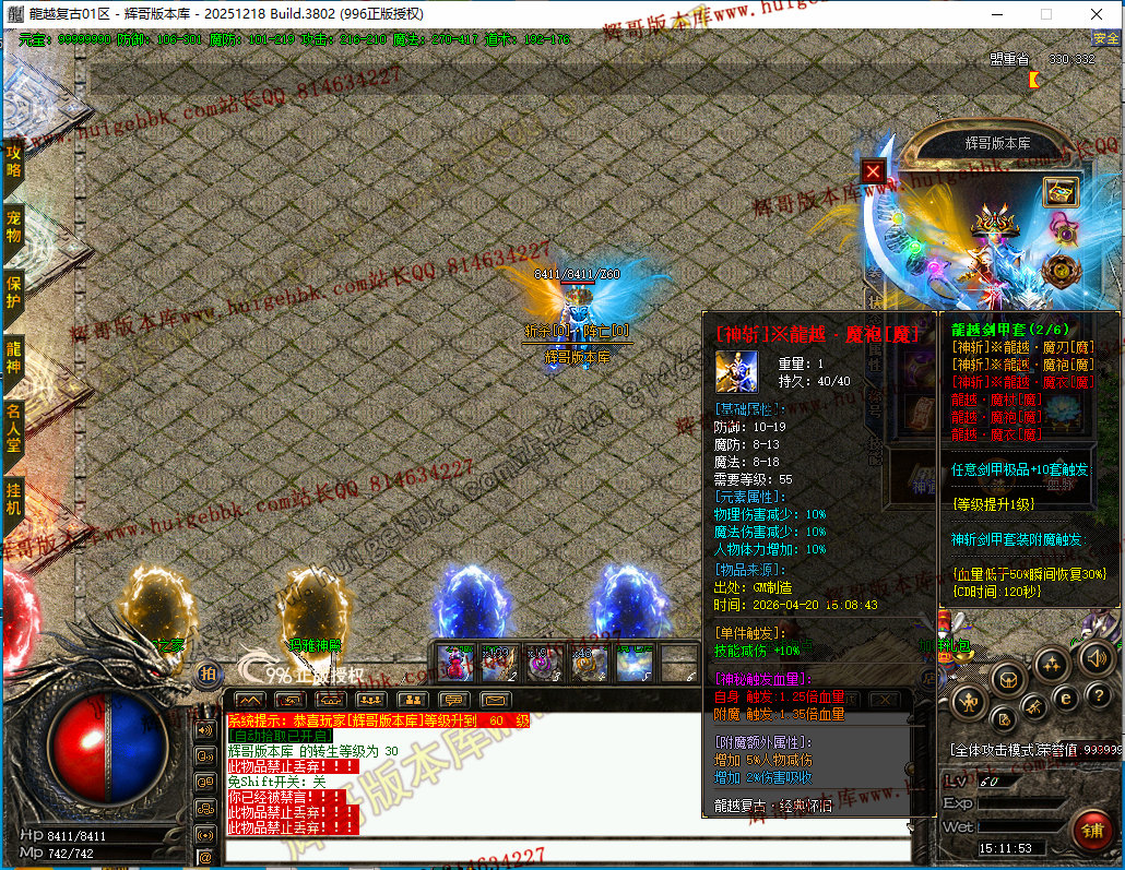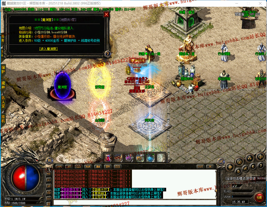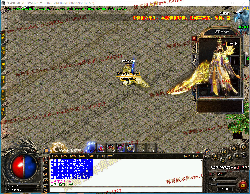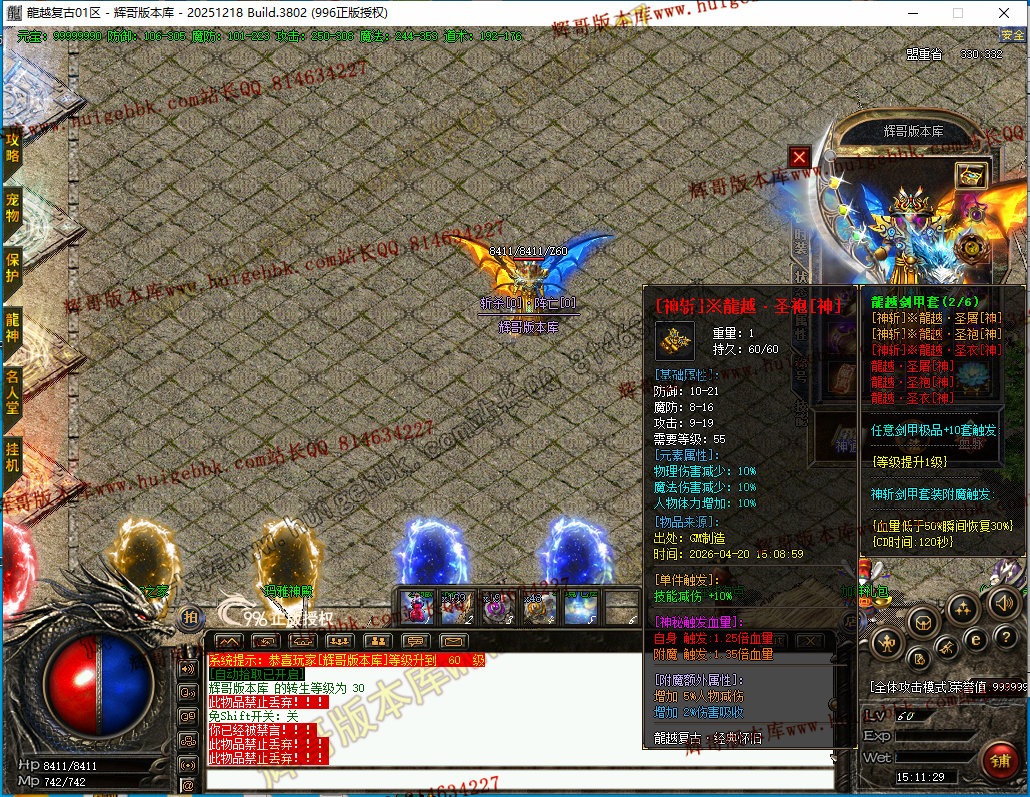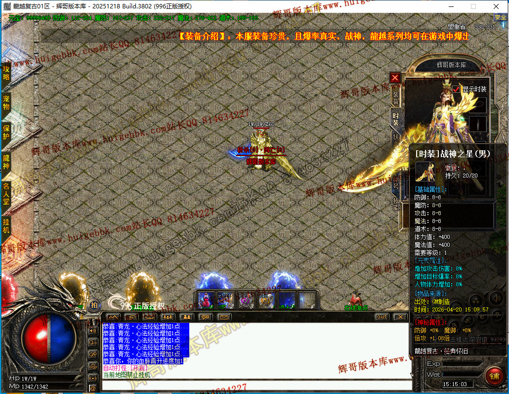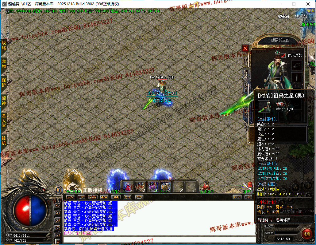 更新4:更新了一套神斩终极套.全靠打3星怪开始爆本服所有装备.完全看脸追梦