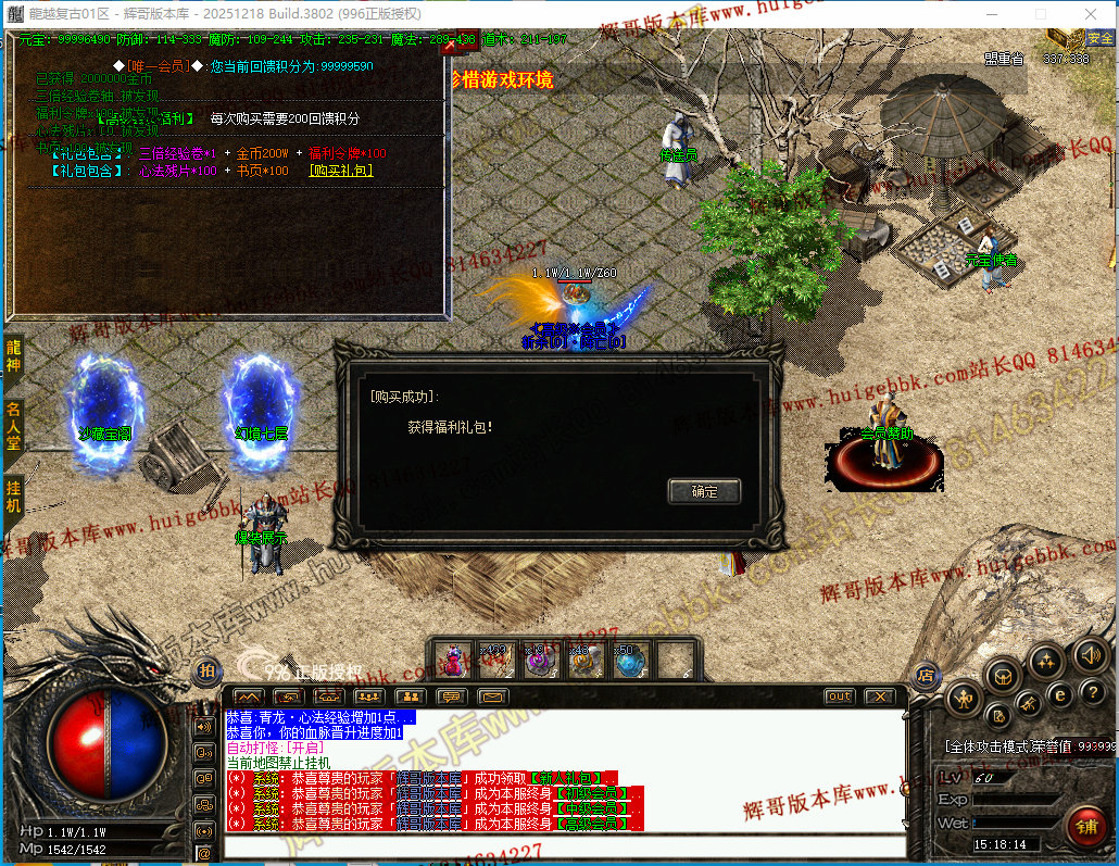 重点老板进服玩法2: 庄园福利使者倍攻属性用福利令牌升了(老板可直接升满.打怪爆率跟伤害高.对前期帮助很大)