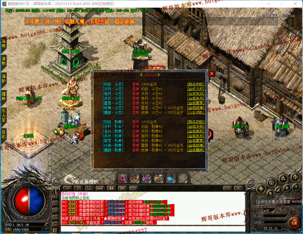28-337独家1.76龍越复古三职业传奇版本-龍神护体-龍越复古-四大陆-自动回收-996PC引擎