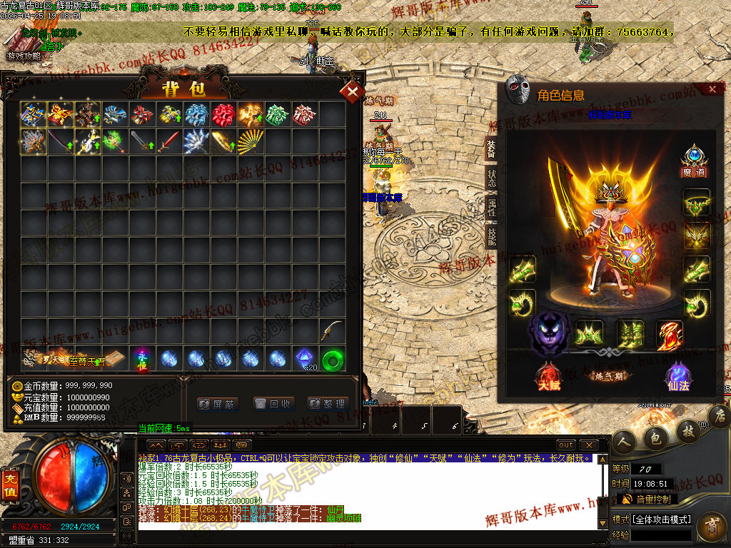 如果发现影响开区的大问题,可联系站长进行免费修复,细节问题自己处理不负责细节问题,