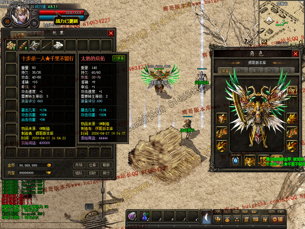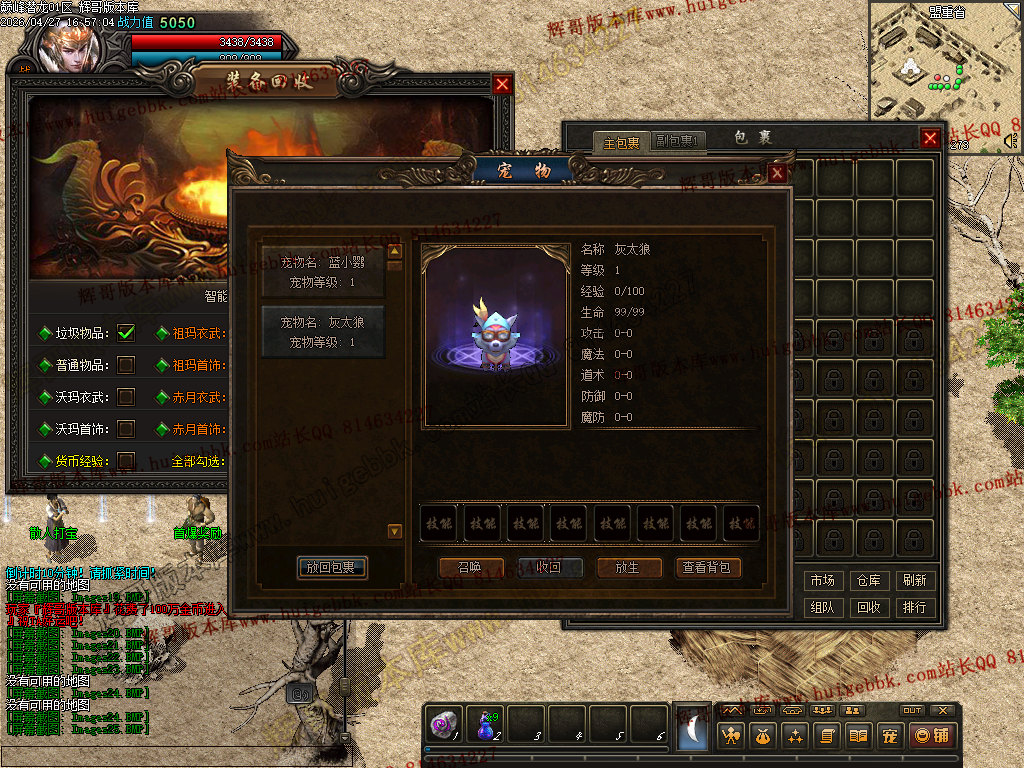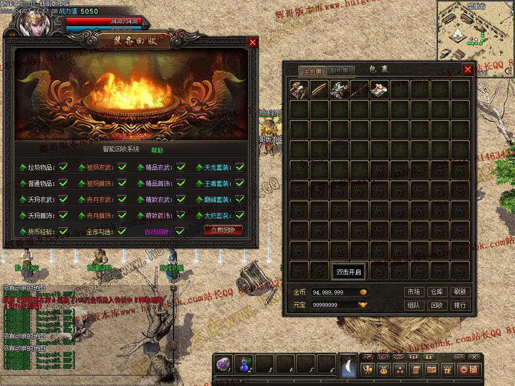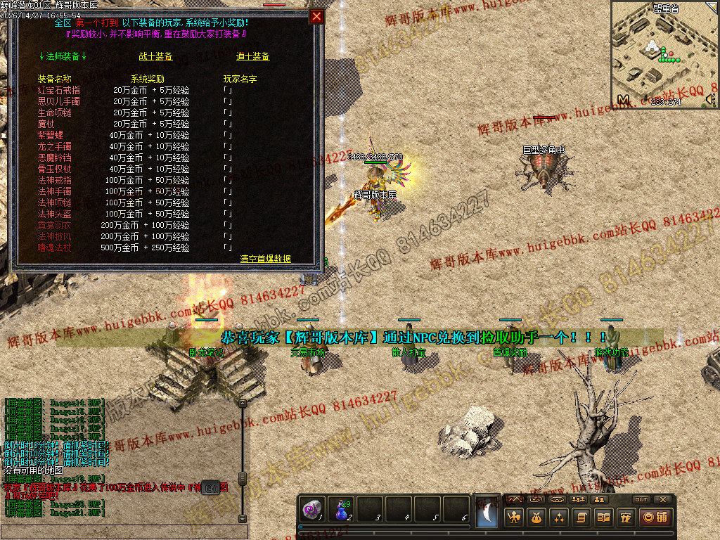 1. 修复:土城游戏功能NPC兑换中华时会多给50W金币的BUG。