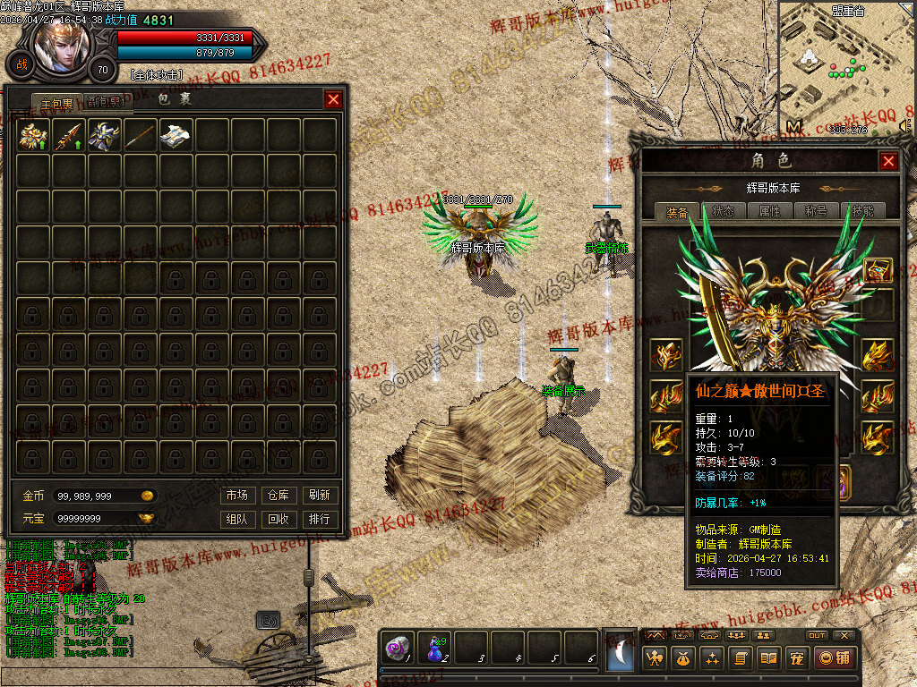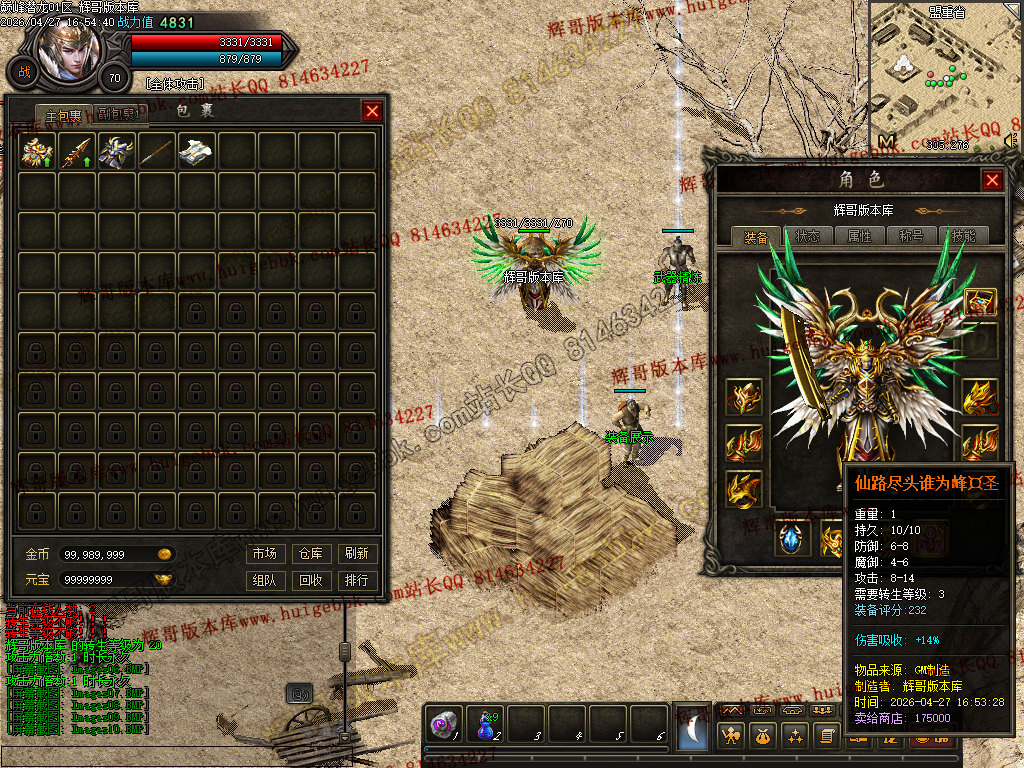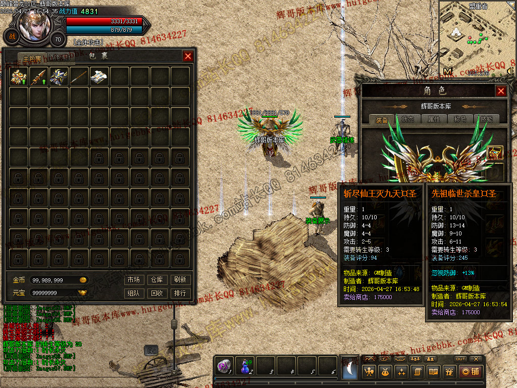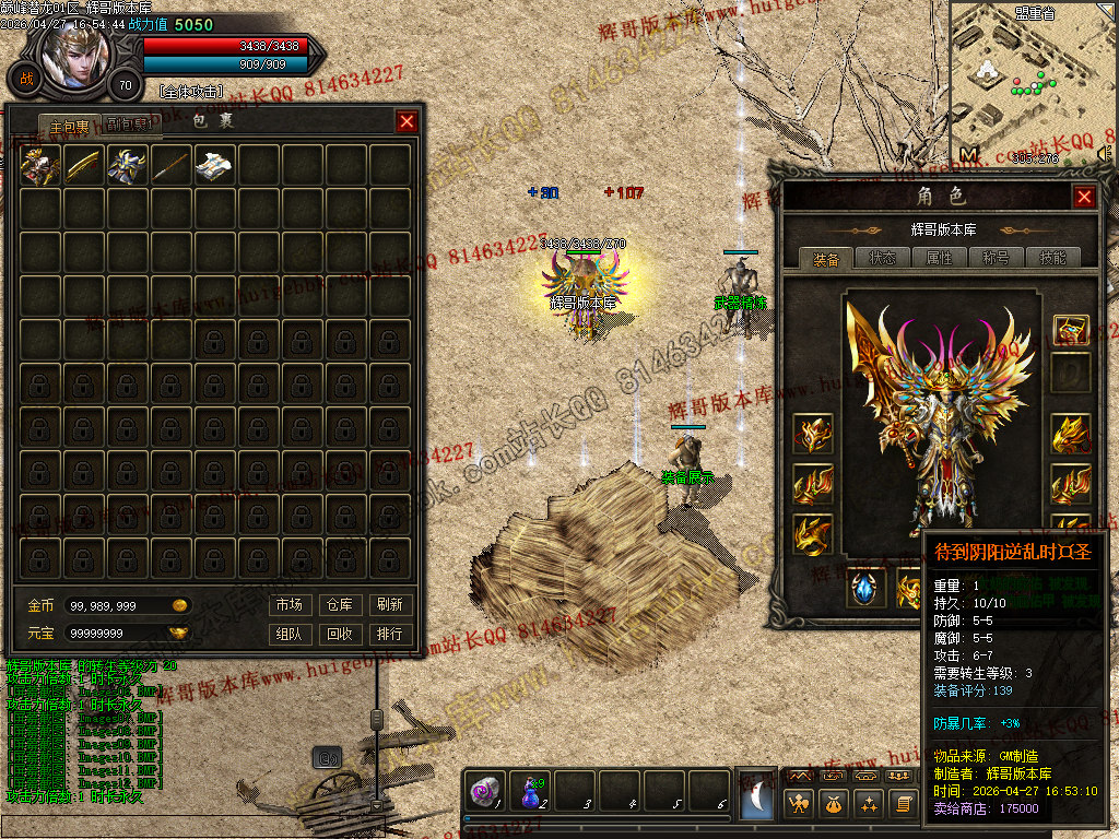 1. 修复:土城游戏功能NPC兑换中华时会多给50W金币的BUG。