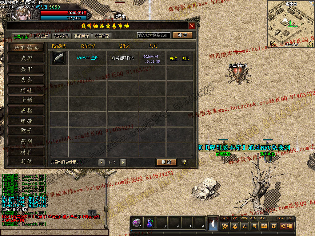 3. 修复交易市场:真人购买真人出售的物品时无交易记录问题。
